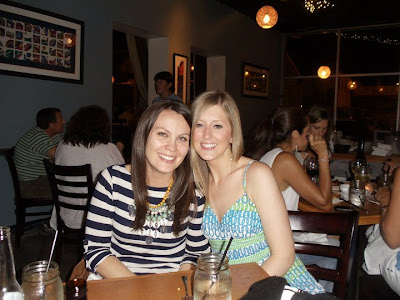 Let's get back to dinner. So J and I arrived early, grabbed a drink, and let the good workers of Salt Air know our friends were joining us soon. We actually got seated pretty quickly (Nino, I honestly don't know how you did it with that busy restaurant, but impressive). We ordered WAY TOO MANY appetizers. And the mussels were a different mix than the usual. I liked them because the had tons of tomatoes and corn mixed in. I actually made Lauren a "loaded mussel" and she liked it. Delicious. We also had salad, chicken wings, and the usual pinchos. As per usual, all delicious. We ate crab cakes and steak and fish for dinner- again all amazing.
